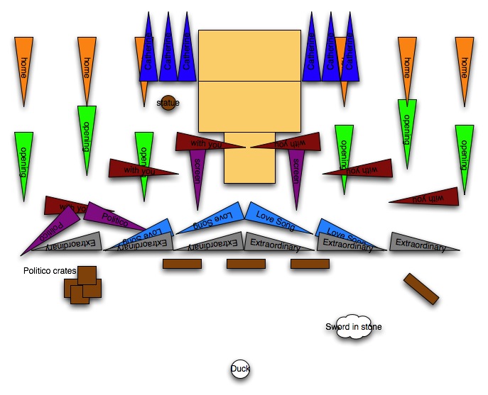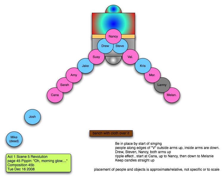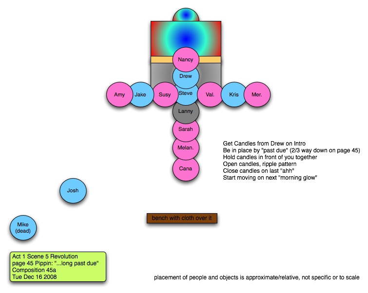 Here are some of the materials that were used for PWLT’s Pippin I stage managed back in November 2008 to February 2009.